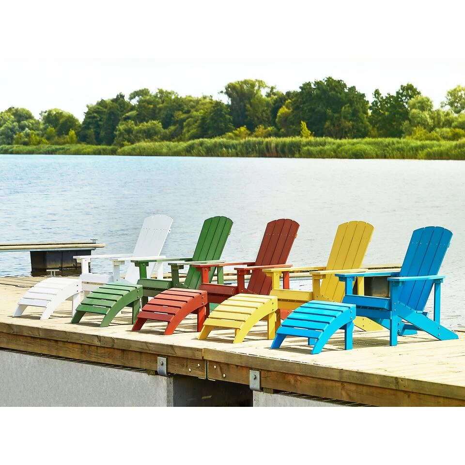 Hoogwaardige tuinstoel met voetenbank en echte houtlook. Samen met de op kleur afgestemde voetenbank wordt dit model tuinstoel een stijlvolle aanvulling op elke moderne tuin of terras. Het recyclebare kunststof hout is voorzien van RVS schroeven en heeft een bedrieglijk echte houtlook. Het materiaal is daarnaast UV- en kleurvast. De hoogwaardige, weerbestendige materialen maken de stoel zeer duurzaam, zodat deze jarenlang buiten kan worden gebruikt. Dankzij de schuin aflopende zitting en de perfect passende voetenbank kun je altijd optimaal genieten van de zon.