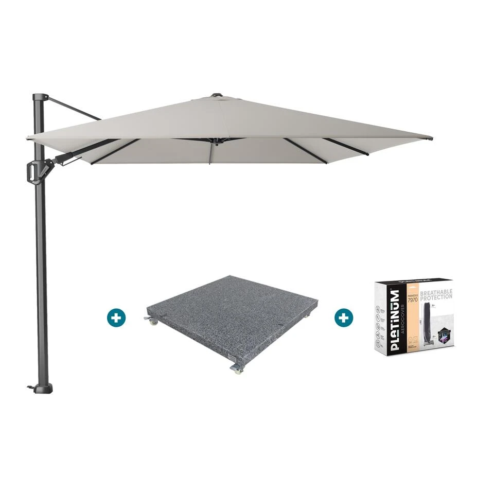 Platinum Challenger T2 3.5×2.6 m. parasol Manhattan Grey met voet en hoes
