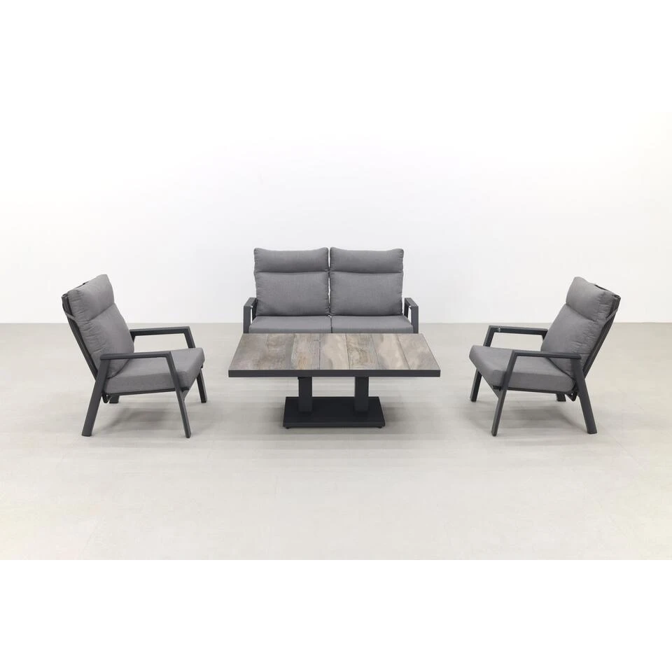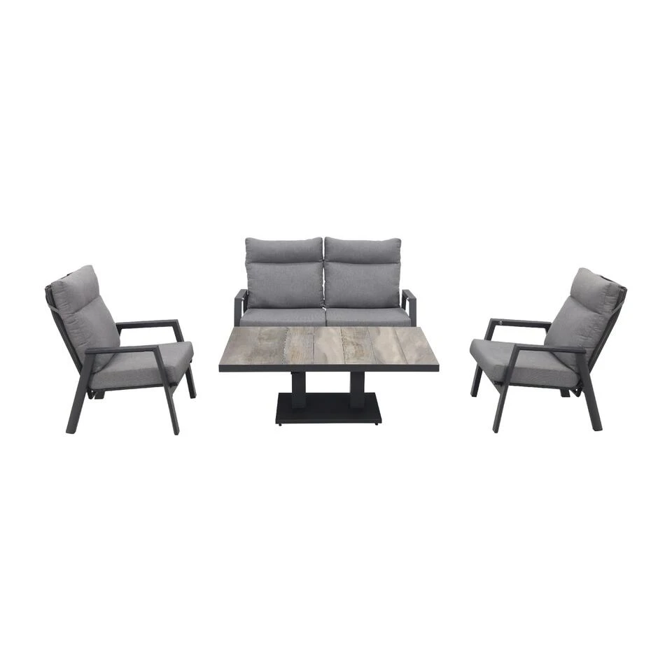 Azoren stoel-bank loungeset 4-delig verstelbaar – Antraciet