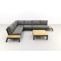 - Materiaal: PE-rattan, gepoedercoat staal, stof (100% polyester) en eucalyptushout met teak-look afwerking